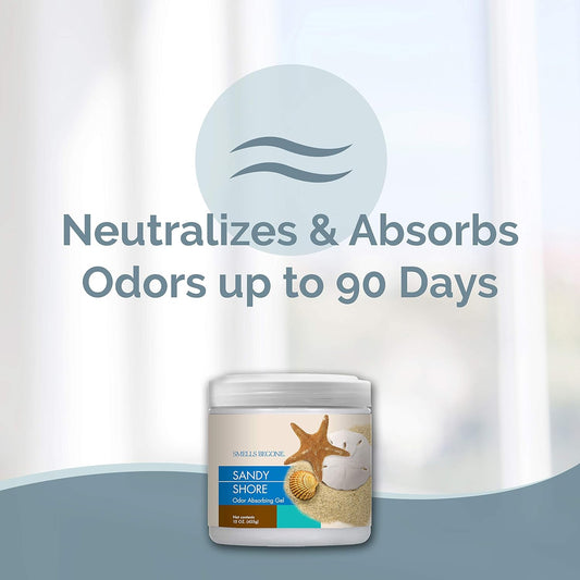 SMELLS BEGONE Air Freshener Odor Absorber Gel - 15 oz, Pack of 2 - Absorbs and Eliminates Odor in Pet Areas, Bathrooms, Cars, & Boats - Made with Essential Oils - Sandy Shore Scent
