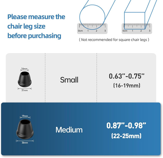 1 Inch Heavy Duty Rubber Chair Leg Caps - 24 PCS Non-Slip Furniture Floor Protectors with Metal Inserts for Wood, Tile, Carpet - Fits Chairs,Stools,Bar Stools