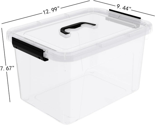 10.5 L Clear Latch Storage Bin with Lid, 4 Packs Plastic Organizing Box with Black Handle