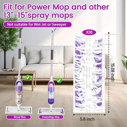 30 Pack Disposable Power Mop Refills Compatible for Swiffer Power Mop(13-15in), Multi-Surface Spray Clean PowerMop Replacement Pads for Hardwood Floor Cleaning