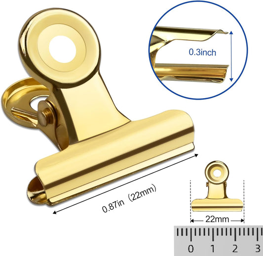 30 Pack Small Bull Clips 0.87 Inch Mini Metal Hinge Clips Binder Paper Hinge Clip for Office, Home, School, Shops, Gold, 22mm