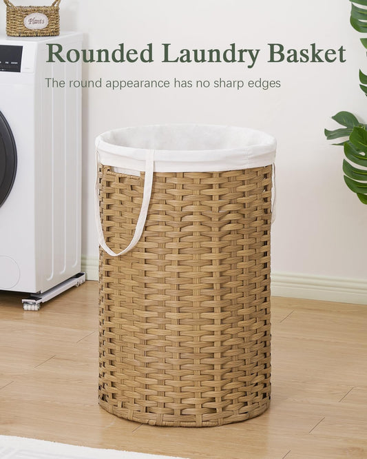 34.3 Gal (130 L) Large Laundry Hamper Laundry Basket Round Handwoven Wicker Laundry Baskets Rattan Laundry Basket with Removable Bag Handles 2 Mesh Bags for Living Room Bedroom Natural