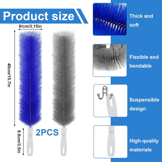 4 Pcs Cobweb Duster, Bendable Fan Cleaner Brushes Set Reusable, Plastic Microfiber Duster for Air Conditioning Shutters,Ceiling Fan, Blades, Curtains,Air Vents(Blue,Gray)