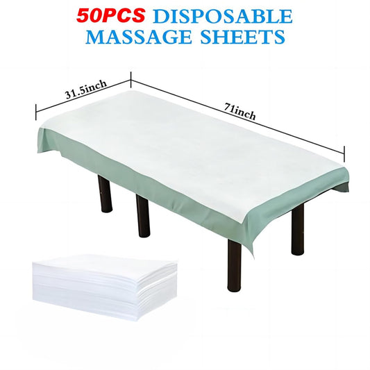 50Pcs Disposable Massage Table Sheets 31.5" x 71" Non-Woven Fabric Bed Covers for Ultimate Hygiene and Comfort in Massage, Tattoo, and Spa Treatments, Breathable and Durable Sheets(White)