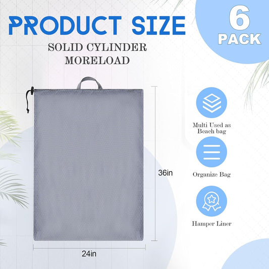 6 Pack 24 x 36 Inches Colorful Mesh Laundry Bag with Handles Machine Washable Secure Drawstring Closure Large Sturdy Mesh Net Laundry for College Travel Dorm Laundromat