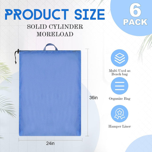 6 Pack 24 x 36 Inches Blue Mesh Laundry Bag with Handles Machine Washable Secure Drawstring Closure Large Sturdy Mesh Net Laundry for College Travel Dorm Laundromat