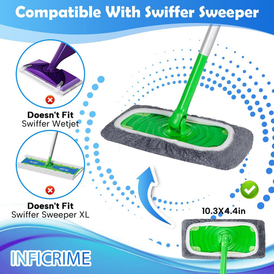 6 Pack Reusable Microfiber Mop Pads Compatible with Swiffer Sweeper Mop, Dry Sweeping Cloths & Wet Mopping Cloths, Washable Mop Pads for Surface/Hardwood Floor Cleaning (Mop is Not Included)