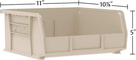 Akro-Mils 30235 AkroBins Plastic Storage Bins, Space-Saving Stackable Bins for Garage, Pantry, Craft Organization, 11" x 11" x 5", Stone, 6-Pack