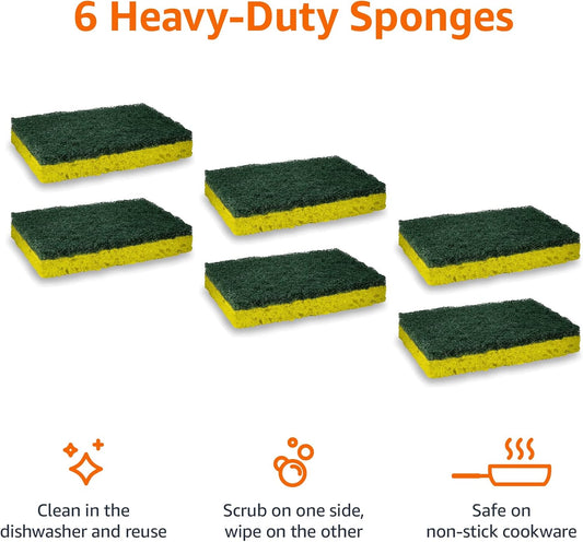 Amazon Basics Cleaning Sponges, Multipurpose, Heavy Duty Scrub Sponges, Yellow/Green, 6-Pack