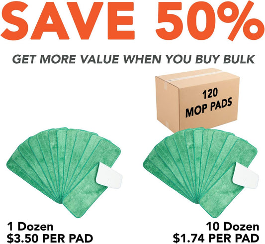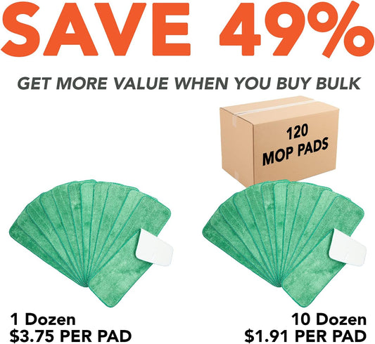 Arkwright Spray Mop Replacement Pads - (Case of 120) Bulk Microfiber Flat Dry and Wet Refill Mop Pads Floor Cleaning, Compatible with Bona and Rubbermaid, Fits All Mop Heads, 13 in, Green