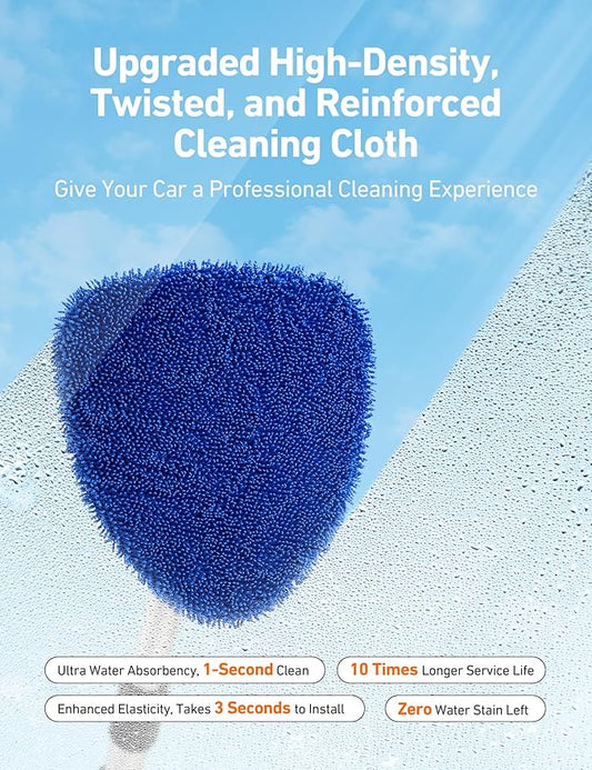 AstroAI Windshield Cleaner Tool, Car Interior Detailing Cleaning Kit with Extendable Handle and 4 Upgraded High-Density Reusable Microfiber Pads, Auto Glass Wiper Brush Kit for Cars, Blue, 15.9in-21in