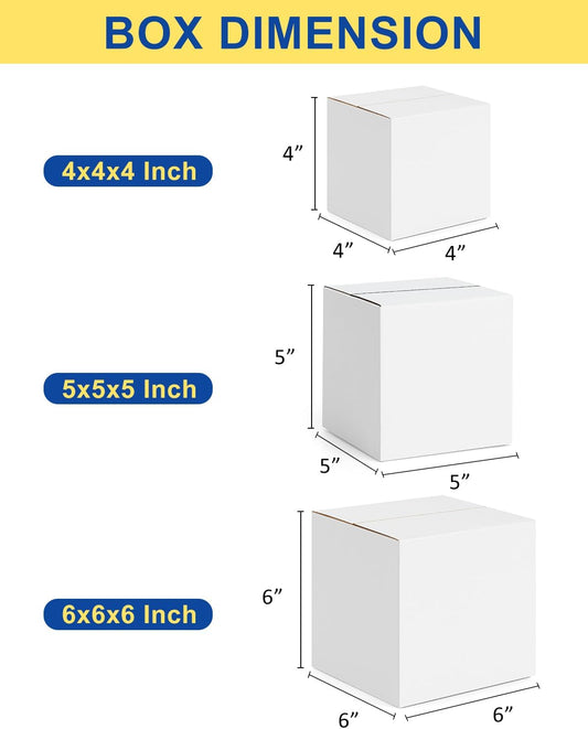 Assorted-Sizes-Shipping-Boxes-45-Pack: 4x4x4 & 5x5x5 & 6x6x6 Small-Shipping-Boxes-Mailers, White Corrugated-Cardboard-Boxes-for-Packing-Small-Business Mailing