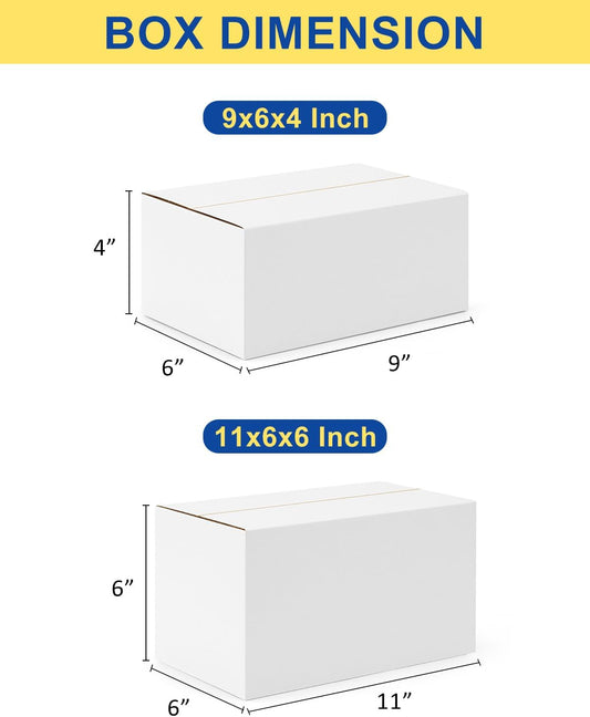 Assorted-Sizes-Shipping-Boxes-40-Pack: 9x6x4 & 11x6x6 Small-Shipping-Boxes-Mailers, White Corrugated-Cardboard-Boxes-for-Packing-Small-Business Mailing