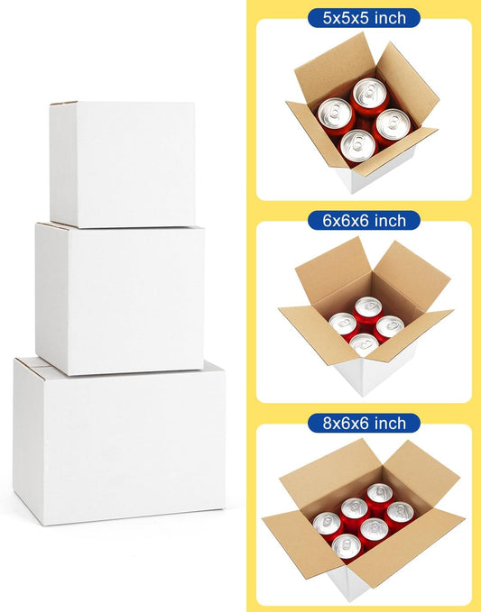 Assorted-Sizes-Shipping-Boxes-45-Pack: 5x5x5 & 6x6x6 & 8x6x6 Small-Shipping-Boxes-Mailers, White Corrugated-Cardboard-Boxes-for-Packing-Small-Business Mailing