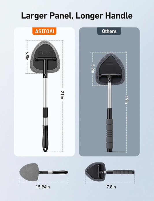 AstroAI Windshield Cleaner Tool, Car Interior Detailing Cleaning Kit with Extendable Handle and 4 Upgraded High-Density Reusable Microfiber Pads, Auto Glass Wiper Brush Kit for Cars, Gray, 15.9in-21in