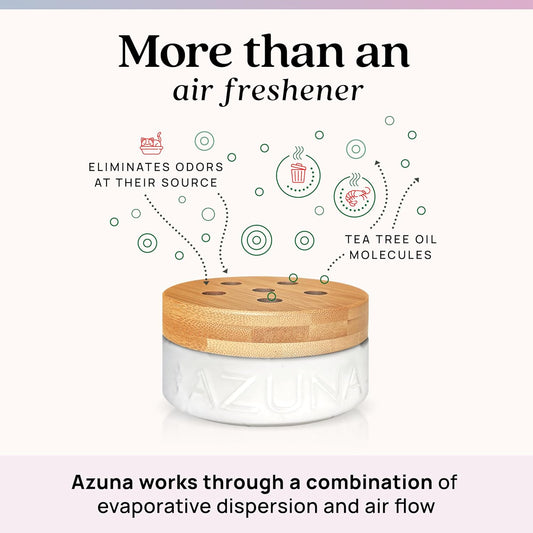Azuna Air Freshener & Odor Eliminator for Strong Odor | 1 Room Kit Includes (1) Empty Luxe Glass Jar & 8oz Refill with Tea Tree Essential Oil Gel | Aromatherapy | Last 60-90 Days
