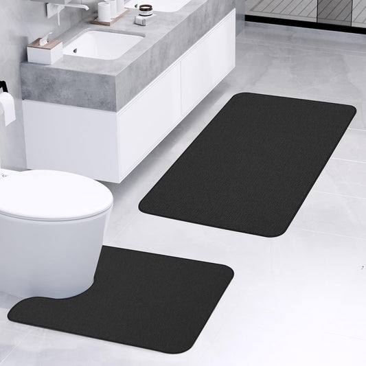 Bathroom Rugs Set 2 Pieces,Thin Bathroom Mats,Toilet Rugs,Quick Dry,Non-Slip,Machine Washable,Low Pile,Absorbent Bath Mats,Shower,Sink,Home Decor Accessories.Black,1'5"x2'3"+1'8"x2" U Shape