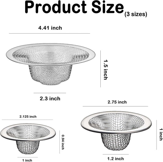 Bathroom Drain Strainers (Set of 3 Sizes), Hair Catcher for Bathroom Sink Bathtub Shower Floor Drain, Stainless Steel Filter Trap Fit Drain Hole from 1.2” to 2.17”