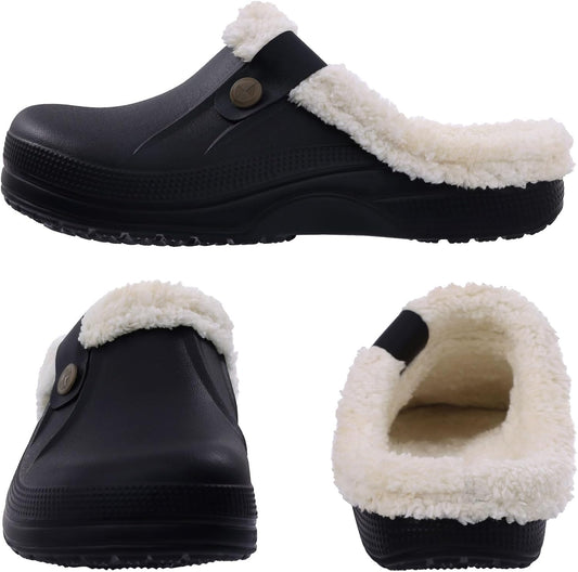 Beslip Classic Fur Lined Clogs Waterproof Winter Fuzzy Slippers for Women Men Indoor and Outdoor