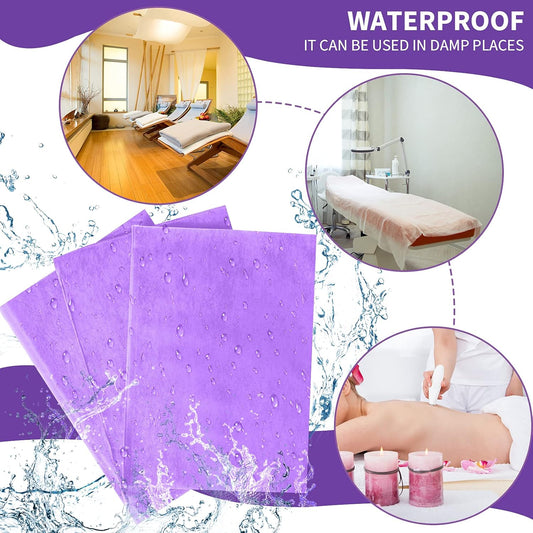 Breling 100 Pcs 31.5 x 71 Inch Disposable Bed Sheets Oil-proof PE Film Massage Table Sheets Non-woven Fabric Spa Waterproof Bed Cover Breathable for Beauty Salon Hotels Tattoo Waxing(Purple)