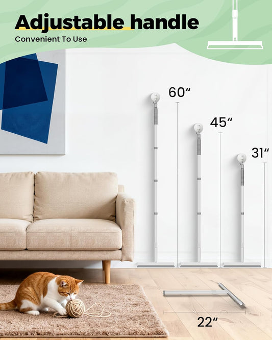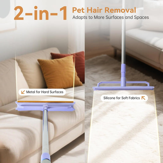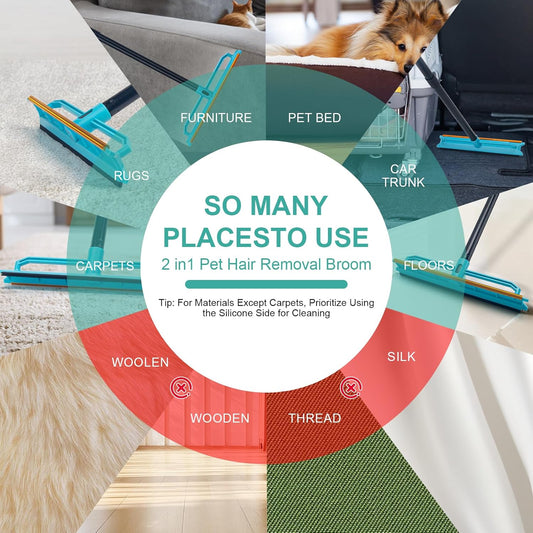 Carpet Rake for Pet Hair Removal Tool - 4 in 1 Pet Hair Remover Kit for Dog Cat Fur Remover, Contain 60" Adjustable Rubber Broom, Glove, Magic Brush and Scraper for Home Furniture, Rugs, Mats