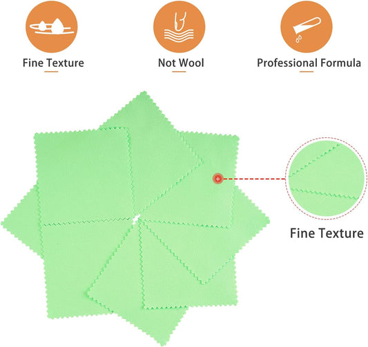 CATIFLIN 100pcs Jewelry Cleaning Cloth, Silver Polishing Cloth Individually Wrapped, Small Jewelry Polishing Cloth for Sterling Silver, Gold, Platinum and More (Green, 3.15" x 3.15")