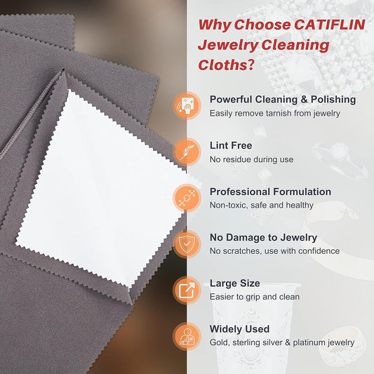 CATIFLIN 3PCS Dark Gray Silver Polishing Cloths, 10"x12" Jewelry Cleaning Cloths for Gold, Silver, Platinum, Watch, Coin, Tarnish Remover, Reusable & Streak for Jewelry Lovers