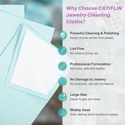 CATIFLIN 3PCS Sea Blue Silver Polishing Cloths, 10"x12" Jewelry Cleaning Cloths for Gold, Silver, Platinum, Watch, Coin, Tarnish Remover, Reusable & Streak for Jewelry Lovers