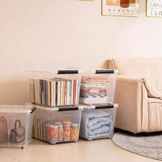 Citylife 69 QT Plastic Storage Bins with Latching Lids Stackable Storage Containers for Organizing Large Clear Storage Box for Garage, Closet, Kitchen, 4 Packs