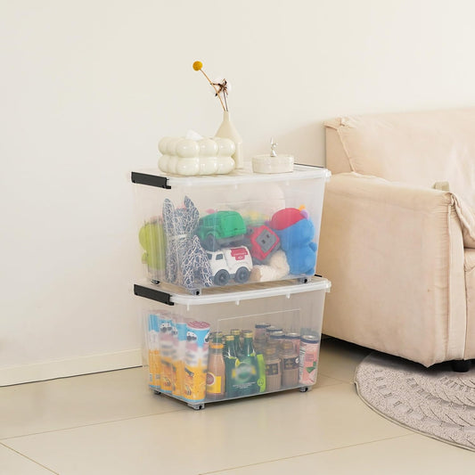 Citylife 82 QT Clear Plastic Storage Bins with Lids Stackable and Nestable Storage Boxes with Lids Large Plastic Storage Containers for Garage, Closet, Kitchen, 2 Packs