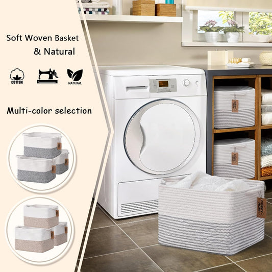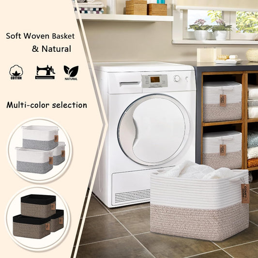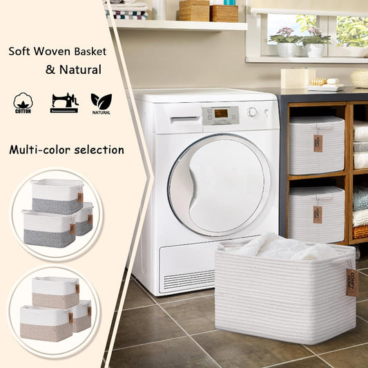 COMFY-HOMI 11.5"x7.5"x4.7" Storage Baskets for Organizing | Cotton Rope Woven Basket | Toy Storage Bin Box | Basket for Shelves, Closet Organizer Bin, Decorative Closet Shelf, 3 Pack, All white