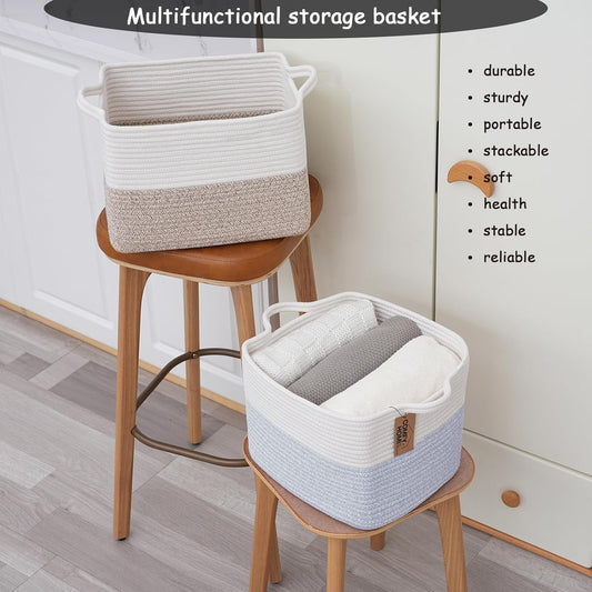 COMFY-HOMI 11.5"x7.5"x4.7" Storage Baskets for Organizing | Cotton Rope Woven Basket | Toy Storage Bin Box | Basket for Shelves, Closet Organizer Bin, Decorative Closet Shelf, 3 Pack, white/bule