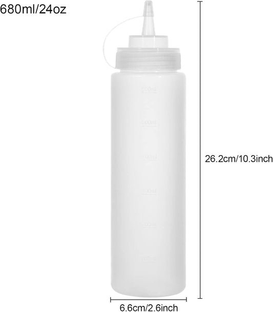 Condiment Squeeze Bottles Ketchup Dispenser 2PCS 24 oz Plastic Sauce Squirt Bottle with Cap Lids, Pancake Squirt Bottles for Sauces Liquids Mustard BBQ Dressing Pancake Art