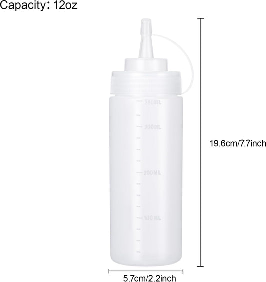 Condiment Squeeze Bottles Ketchup Dispenser, 4 Pack 12oz Squeeze Bottles for Liquids, Plastic Sauce Bottle with Cap Lid, Squirt Bottles for Sauces Liquids BBQ Dressing Pancake Art