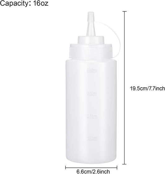 Condiment Squeeze Bottles Ketchup Dispenser, 6 Pack 16oz Squeeze Bottles for Liquids, Plastic Sauce Bottle with Cap Lid, Squirt Bottles for Sauces Liquids BBQ Dressing Pancake Art