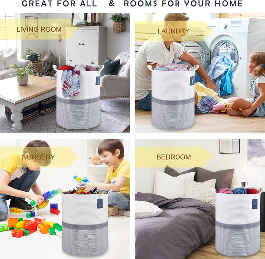 COMSE Extra Large Blanket Basket, Tall Woven Storage Basket, Nursery Hamper, 15.7”x 21.7”, Cotton Rope Laundry Hamper for Toys Clothes Towels, Blend White/Gray