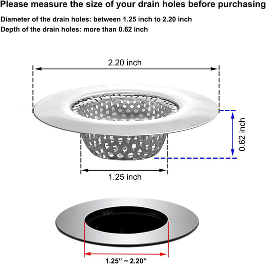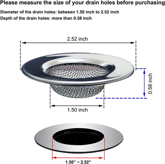 1.50" Bathtub Strainers, Bathroom Sink Strainers, Shower Drain Hair Catcher, Drain Strainer for Laundry, Mop Pool, Utility, Slop, RV Sink, Stainless Steel, Pack-2