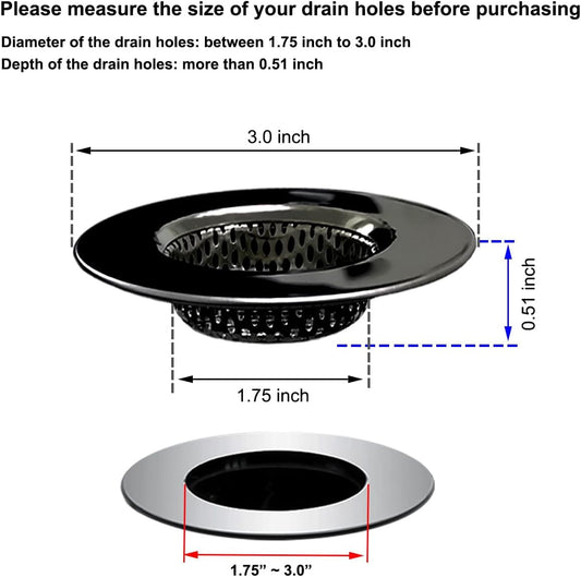 1.75" Bathtub Drain Strainers, Shower Drain Hair Catchers, Stainless Steel Drain Filter Cover for Bathroom Laundry Floor Drain, Fit for 1.75"-3.0" Drain Hole Black