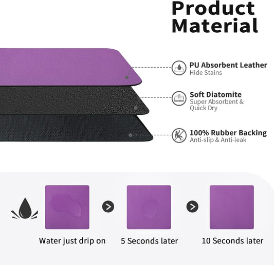 Dish Drying Mat for Kitchen Counter, Heat Resistant Drainer Mats with Non-slip Rubber Backed, Hide Stain Kitchen Super Absorbent Draining Mat, Easy to Clean Dish Rack Pad, Purple 18"x28"