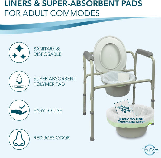 Disposable Bedside Commode Liners and Pads for Portable Toilet Chair Seat Bucket and Bedpan | Combo Pack of 72 Waste Bags and 72 Absorbent Pads | Universal Fit