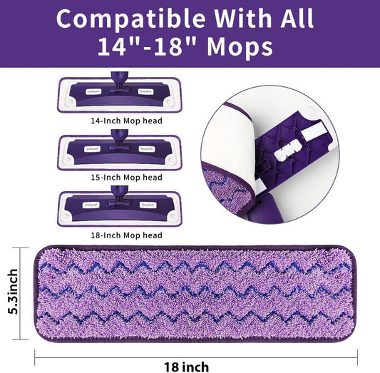 18 inch Mop Pads Refills, 3 Pack Microfiber Reusable Replacement Mop Pads Flat Replacements Heads for Wet Or Dry Floor Cleaning and Scrubbing, Blue & Purple Cloth