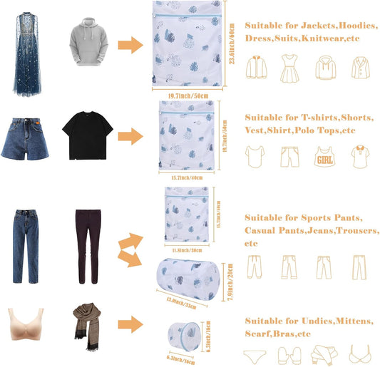 Durable Laundry Bag, Mesh Laundry Bags with Premium Zipper, 5 Pack Washing Machine Wash Bags for Delicates Blouse, Hosiery, Underwear, Baby Clothes, Travel Organization Bag (Leaves)