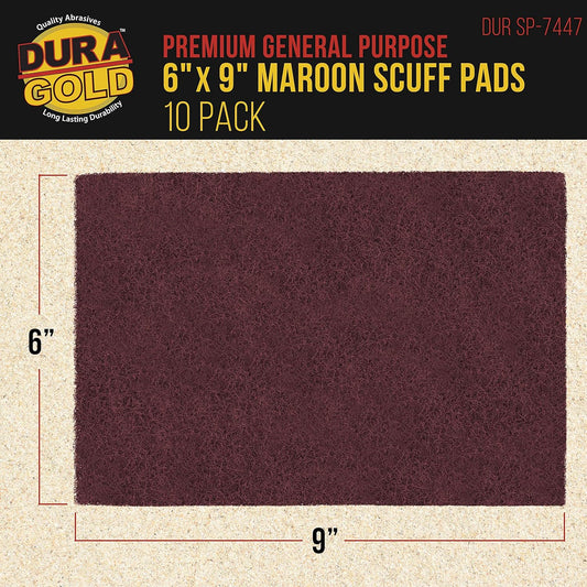 Dura-Gold Premium 6" x 9" Maroon General Purpose Scuff Pads, Box of 10 - Scuffing, Scouring, Sanding, Paint Primer Prep Adhesion Scratch - Surface Preparation Automotive Car Auto Body Woodworking Wood