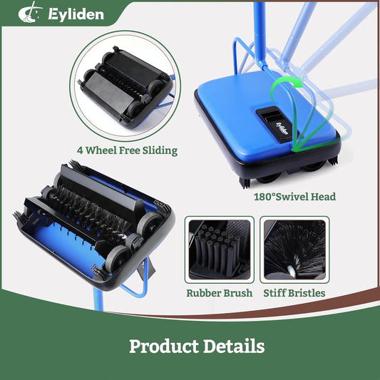 Eyliden Carpet Sweeper, Mini Size Lightweight Hand Push - No Noise, Non-Electric, Easy Manual Sweeping Only for Carpet Cleaning (Blue)