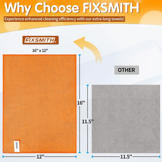 FIXSMITH Microfiber Cleaning Cloth - Pack of 12, Multi-Functional Towels, Size: 12 x 16 in, Highly Absorbent Rags, Lint-Free, Streak-Free for Car, Kitchen, Home, Office