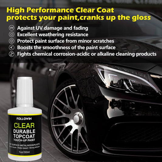 FOLLOWIN Automotive Clear Coat,Gloss Clear Finished Car Touch Up Paint,Use on Exterior & Interior Multi-Surface,Water Based Topcoat for Metal,Wood,Wall 1oz/30ml