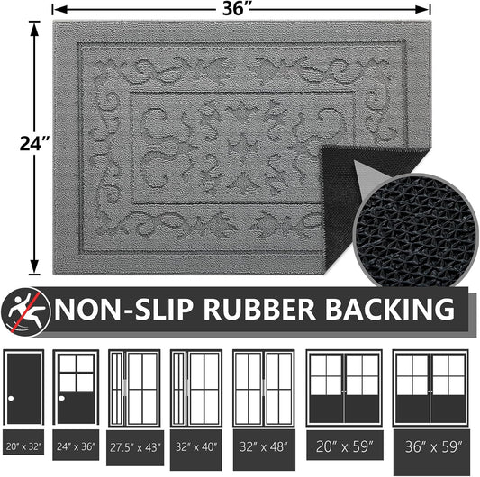 FONEYI Indoor Door Mat 24" x 36", Dirt Trapper Door Mats Non-Slip Entryway Rugs Washable, Absorbent Resist Dirt Welcome Mat, Low Profile Inside Floor Mats for Front Back Door and Entryway, Grey