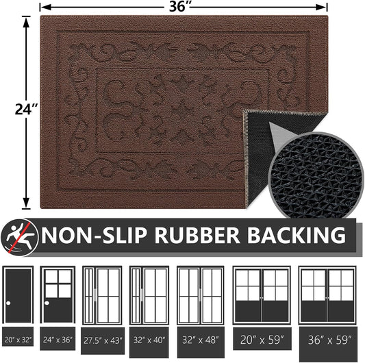 FONEYI Indoor Door Mat 24" x 36", Dirt Trapper Door Mats Non-Slip Entryway Rugs Washable, Absorbent Resist Dirt Welcome Mat, Low Profile Inside Floor Mats for Front Back Door and Entryway, Coffee