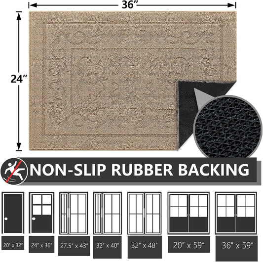 FONEYI Indoor Door Mat 24" x 36", Dirt Trapper Door Mats Non-Slip Entryway Rugs Washable, Absorbent Resist Dirt Welcome Mat, Low Profile Inside Floor Mats for Front Back Door and Entryway, Beige