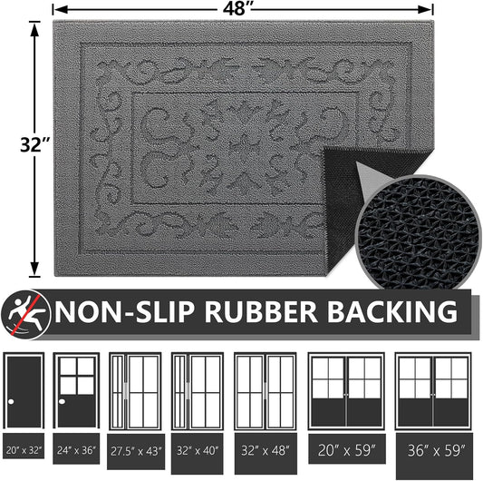 FONEYI Indoor Doormat, Front Back Door Mat Rubber Backing Non Slip Door Mats, 32"x48" Low-Profile Absorbent Resist Dirt Entryway Doormat Inside Floor Mats Entrance Washable, Entry Doormats, Grey